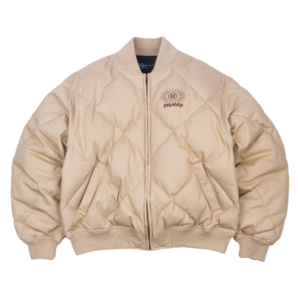 WINTERIZED DOWN-FILL QUILTED BOMBER INSIDE POCKET EMBROIDERED LINING EMBROIDERED CHEST HIT BIG INTERIOR LABEL CROPPED FIT REALLY WARM PERFECT FOR A HOODIE UNDER